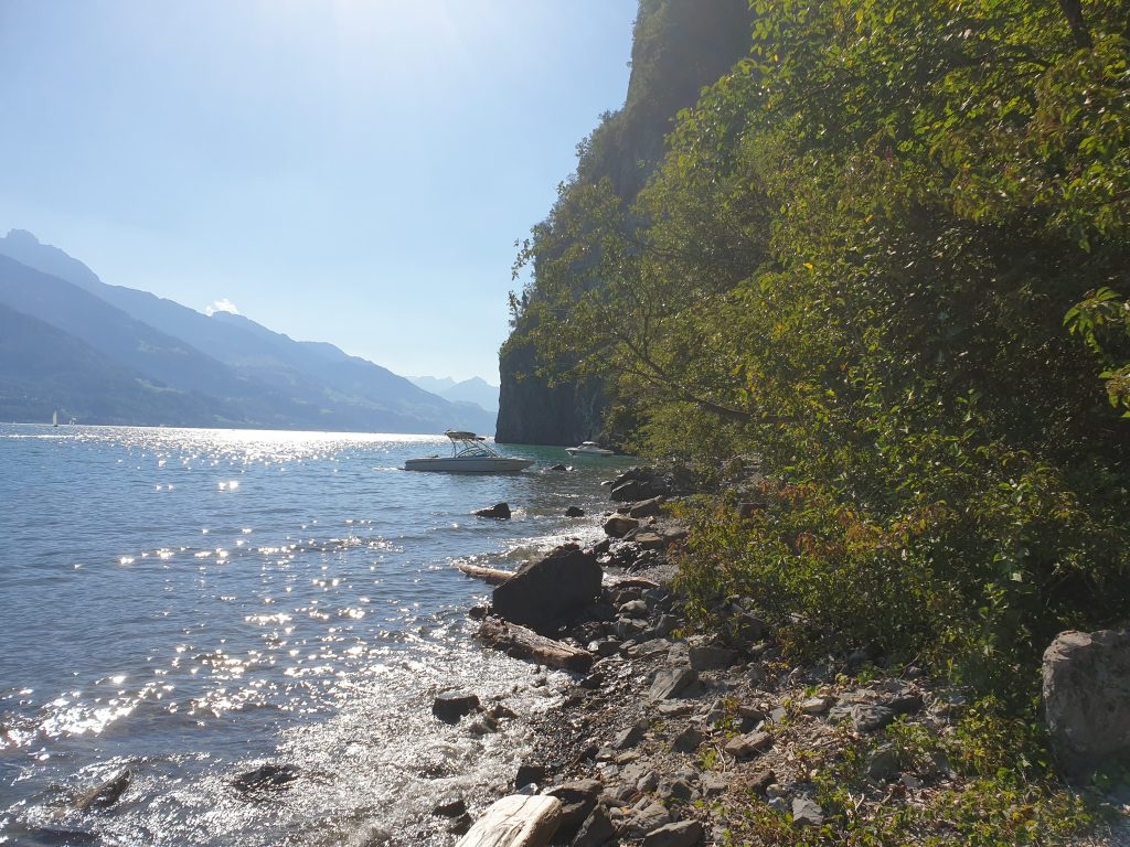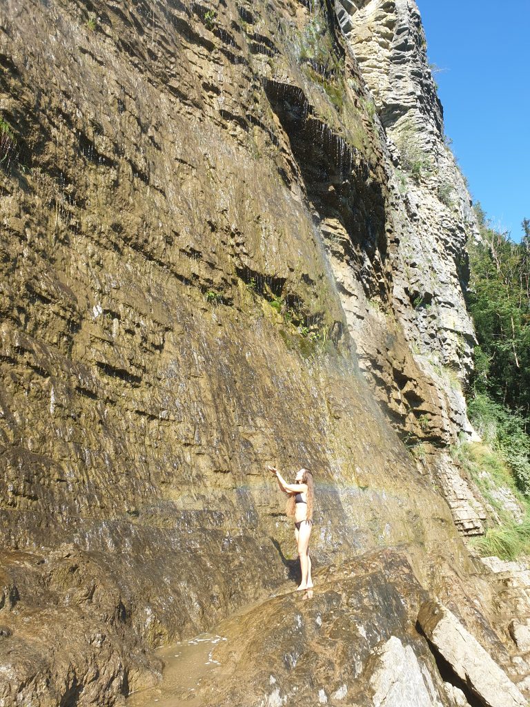 When weather and waves are quite you have the opportunity to paddle in about 45min accross the lake to a wonderful lonely rocky beach with crystal clear water and a small but very high waterfall that produces a unique mist-like water fountain. With some luck you migh even have a chance to see a Capricorn on the rocks above.