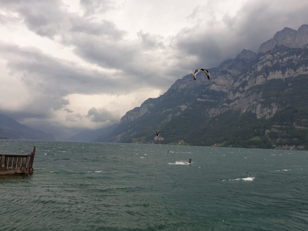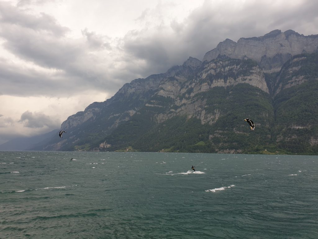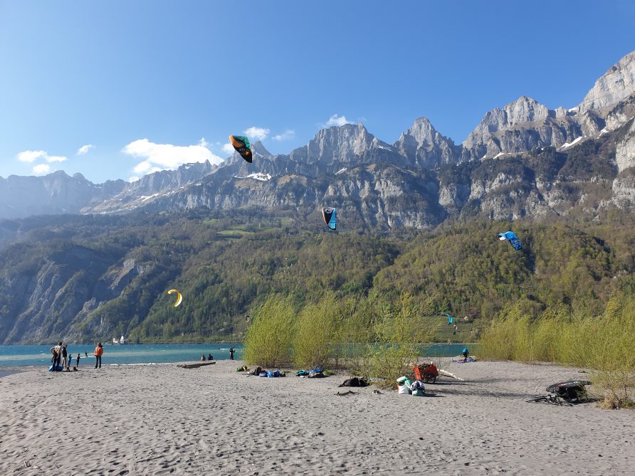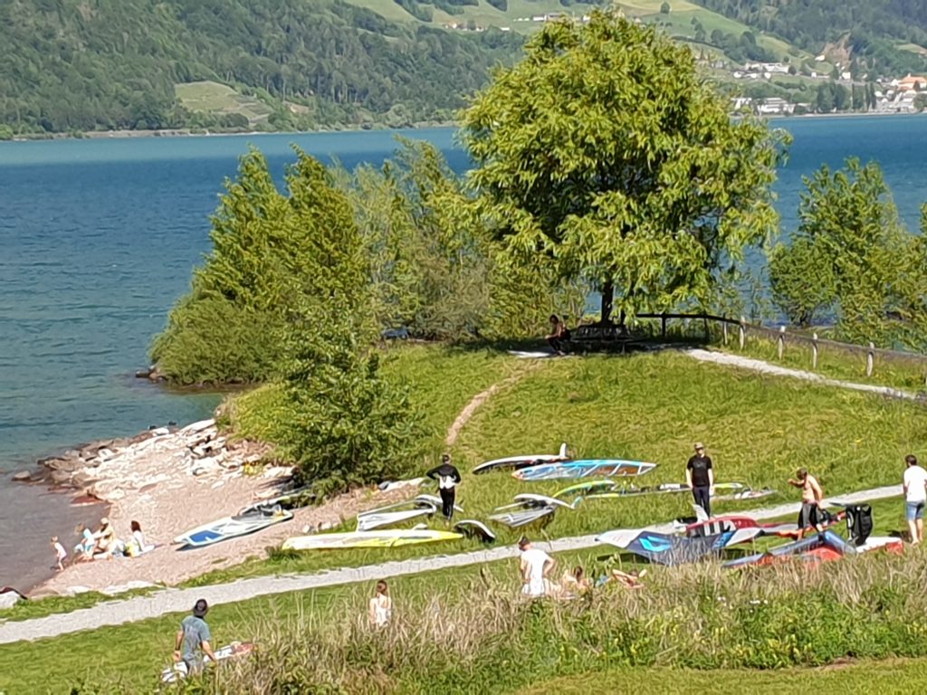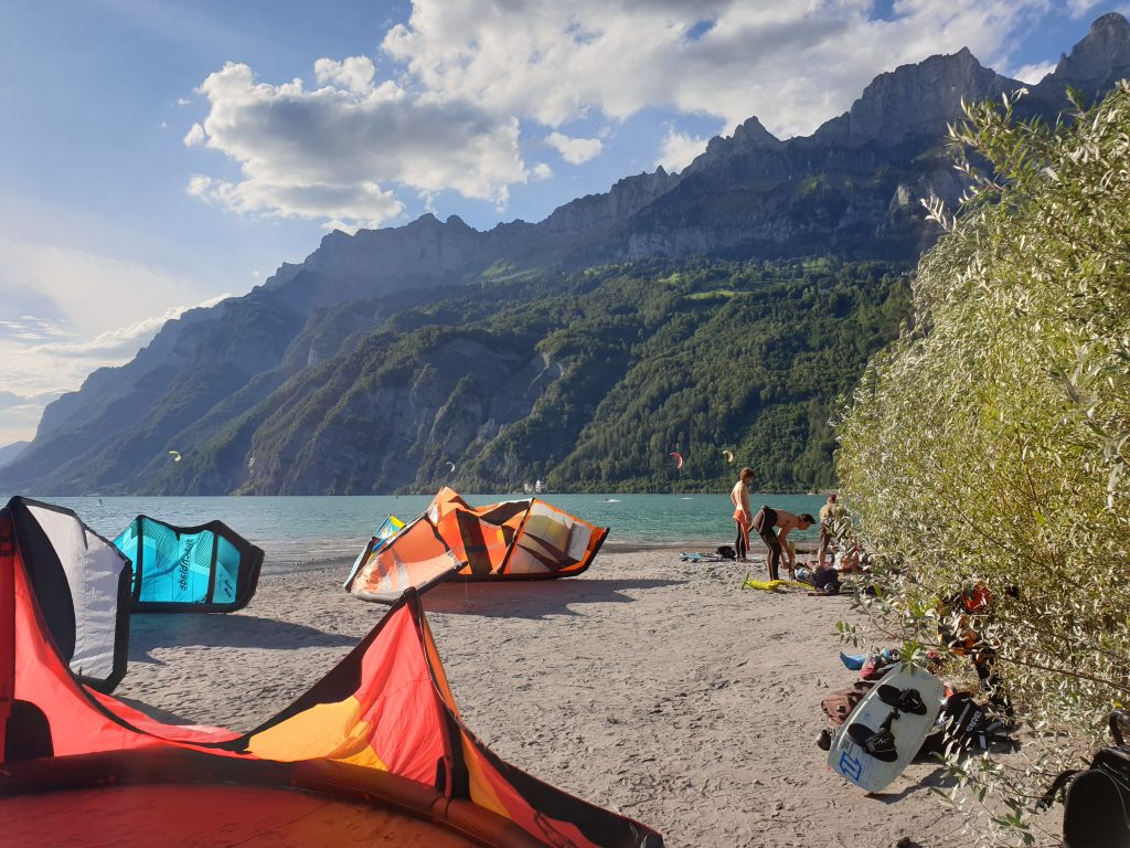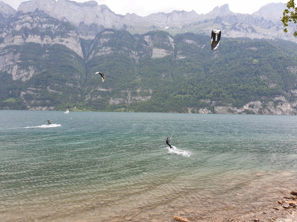 For beginners we recommend the wide sandy beach (picture) on the upper part of the lake by the city Walenstadt.